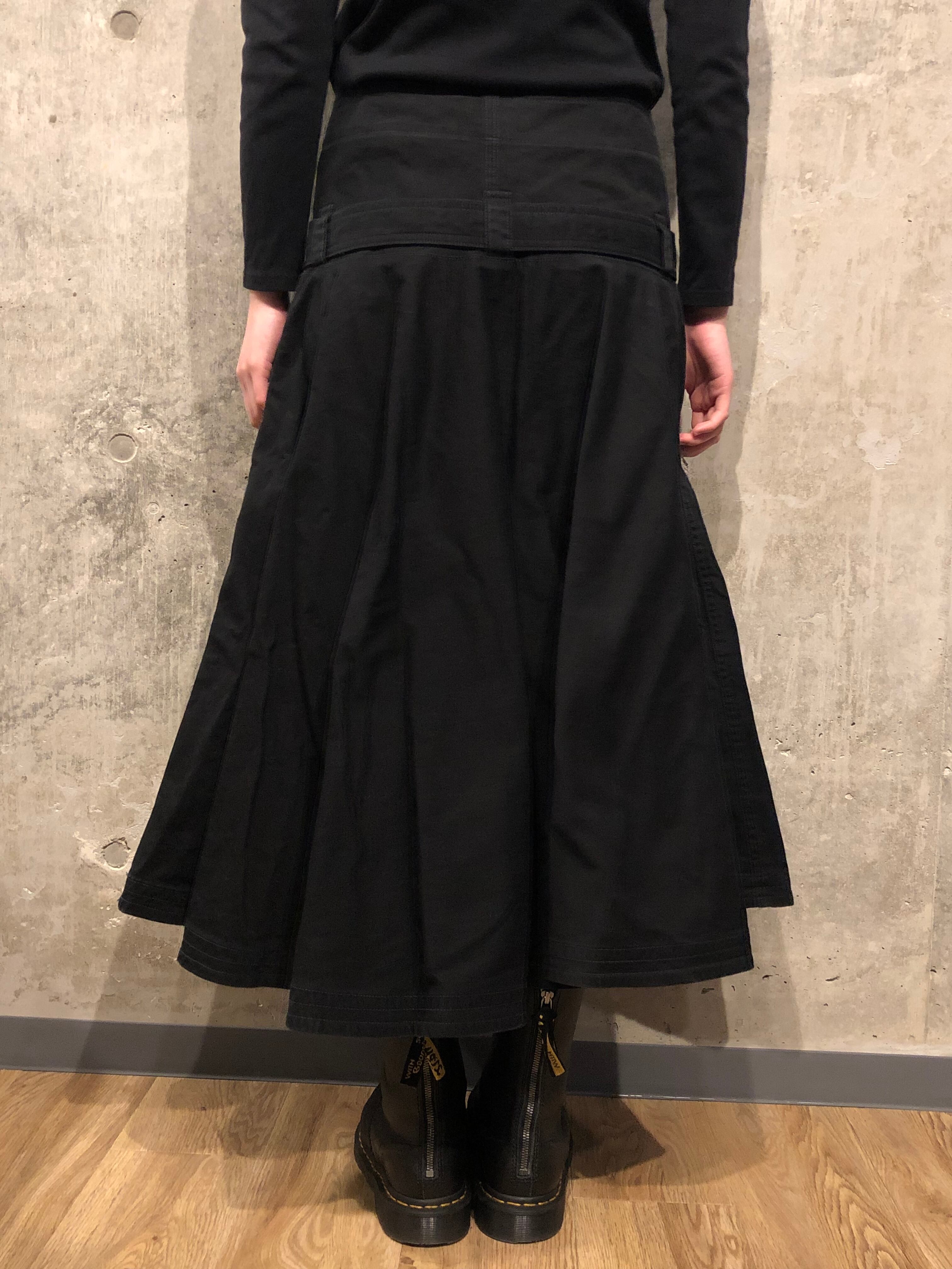 美品 ヨウジヤマモト コットン 製品染め ベルト付きフレアスカート [257]