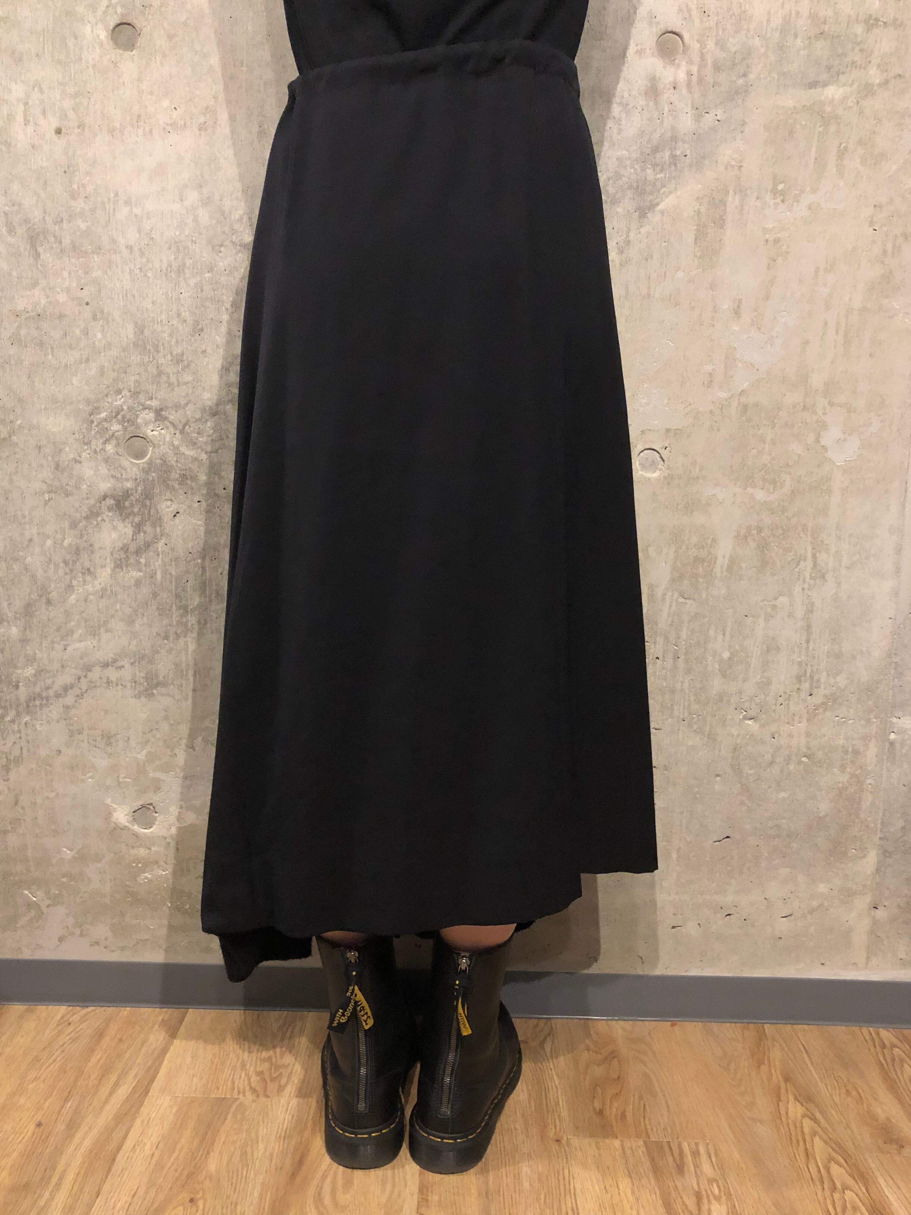 ヨウジヤマモト ウールギャバ 裾リブ切り替え アシンメトリーロングスカート [259]