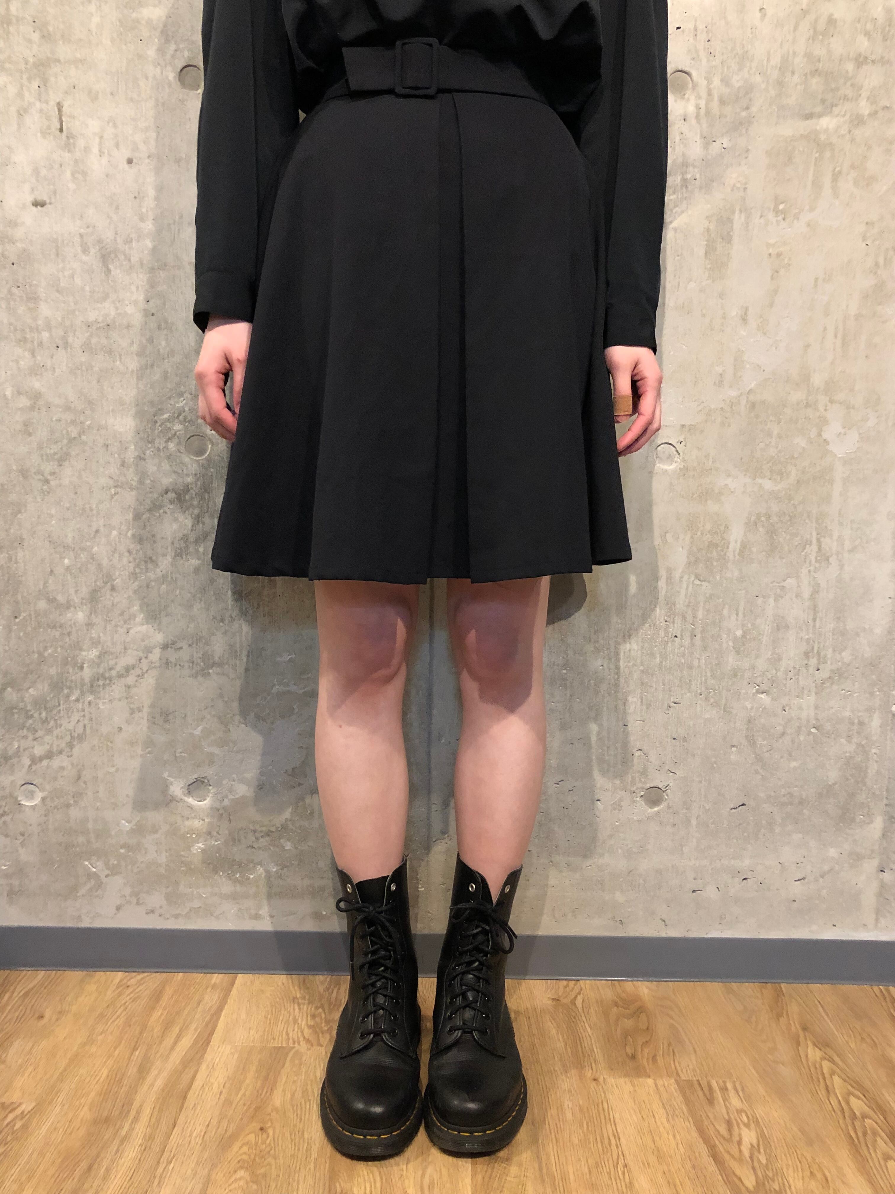 ヨウジヤマモト ウールギャバ ベルト付きプリーツスカート [277]