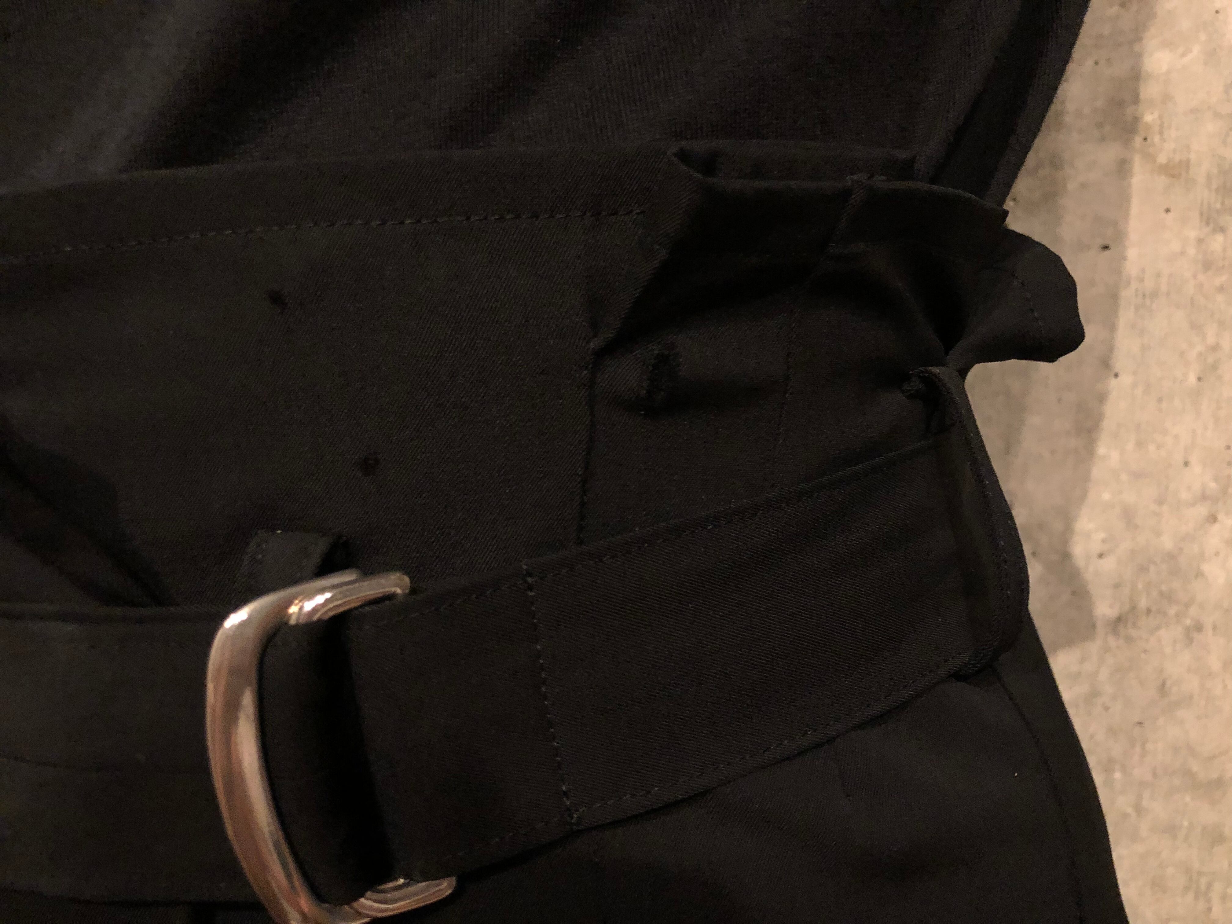 ヨウジヤマモト ウールギャバ ベルト付きプリーツロングスカート [409]