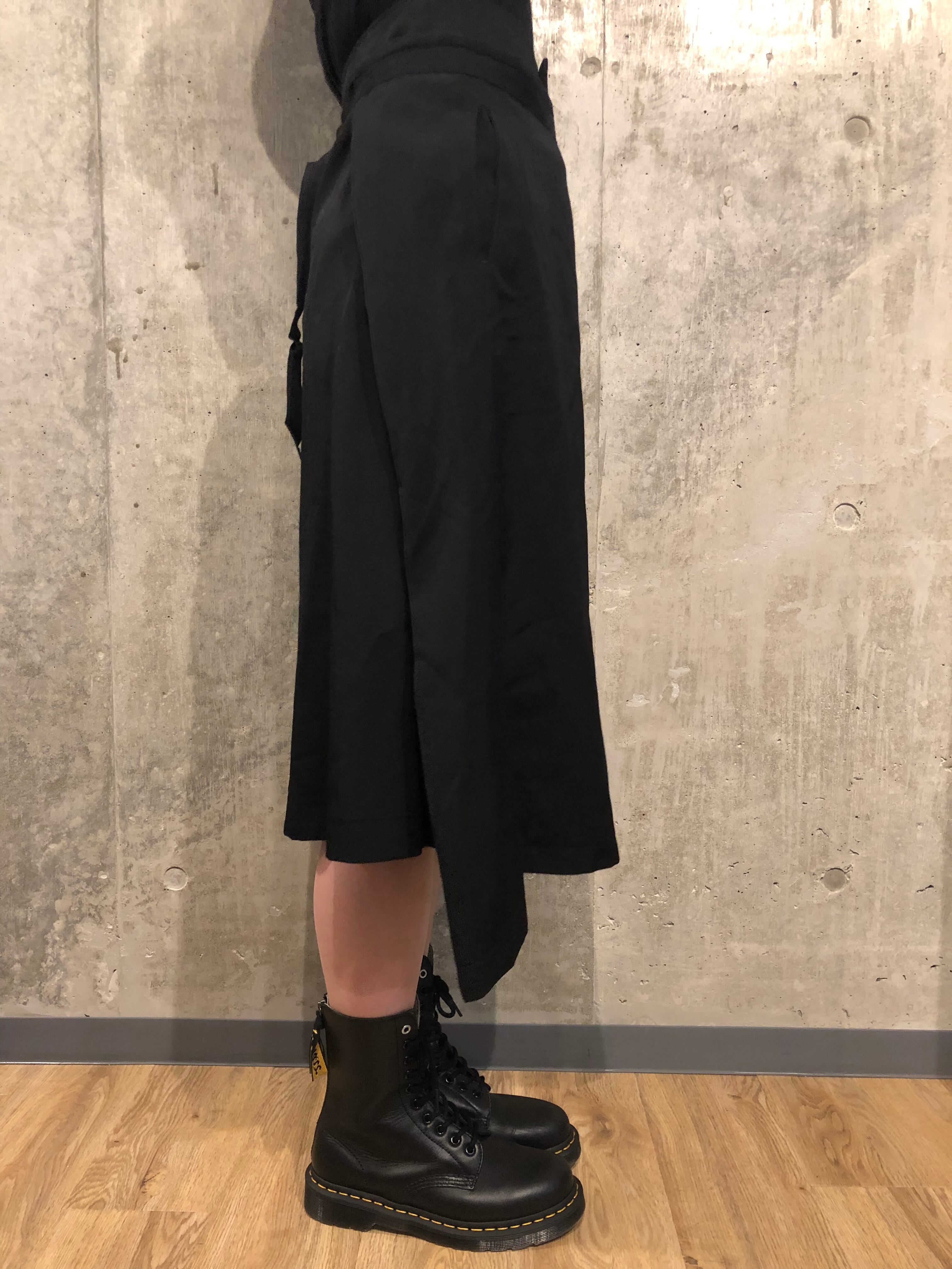ヨウジヤマモト ウールギャバ リボンベルト付き 二重ロングスカート [410]