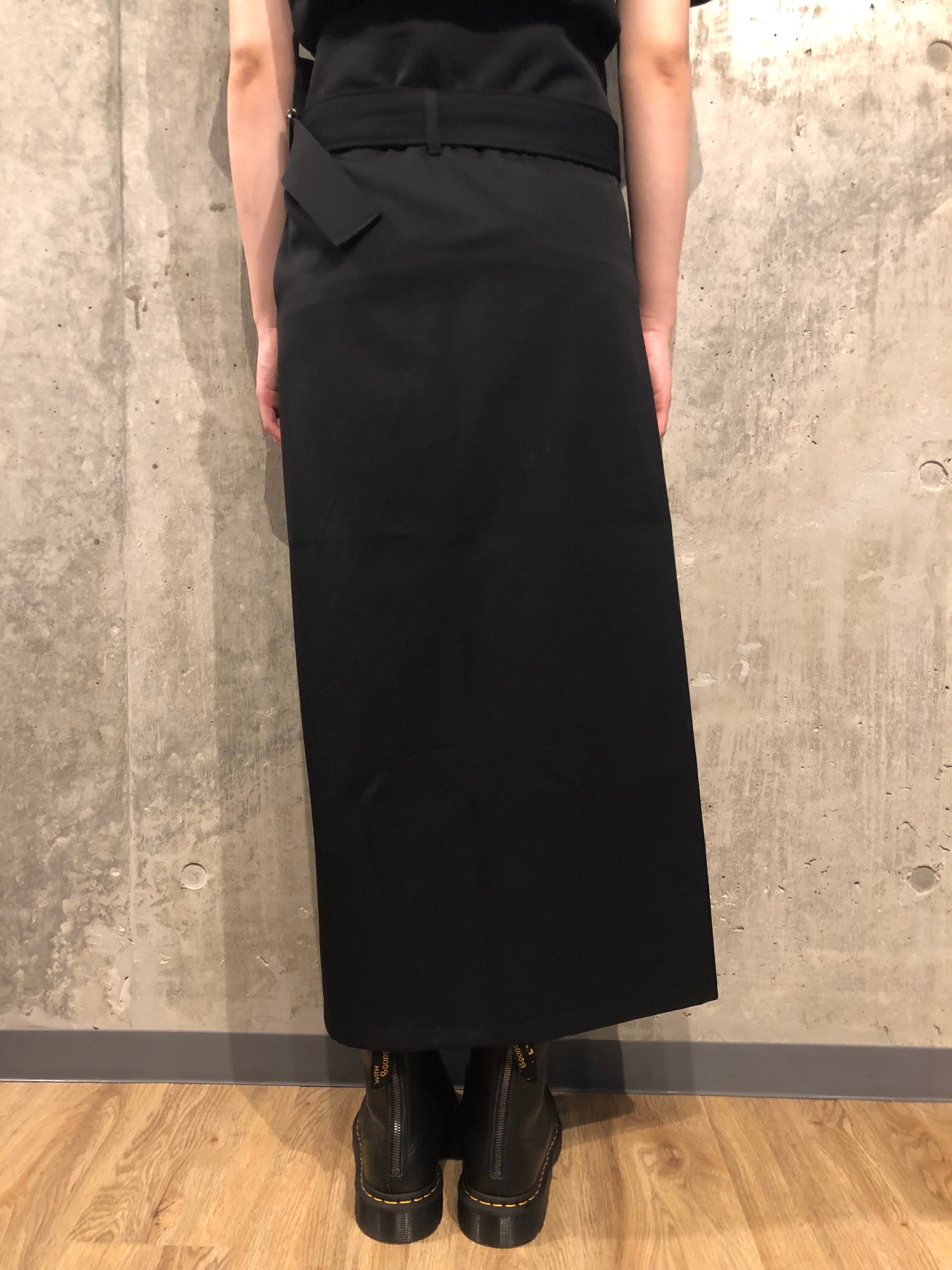 ヨウジヤマモト ウールギャバ ベルト付き 巻きロングスカート [422]