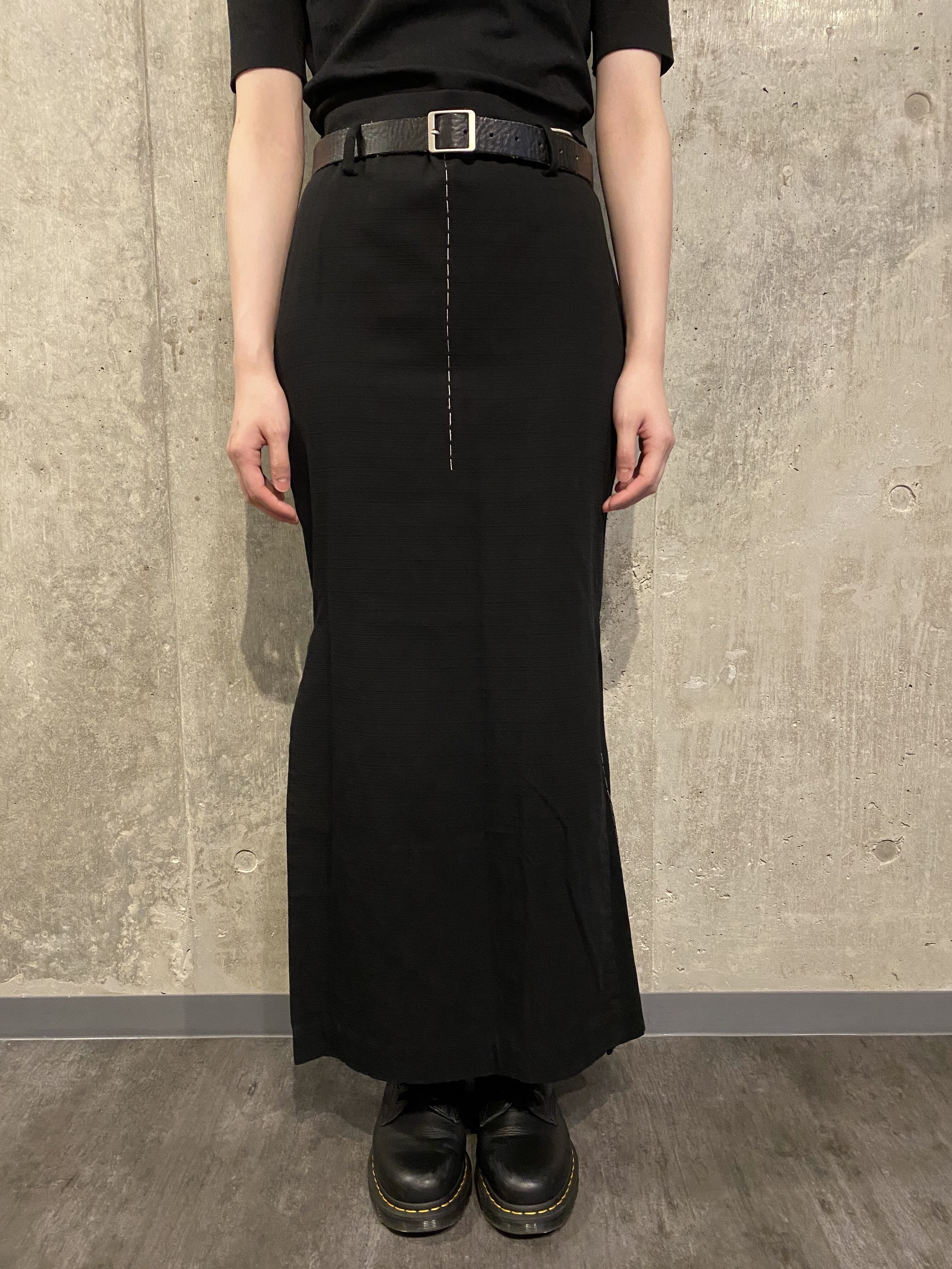 ヨウジヤマモト コットン ステッチデザイン サイドスリット ロングスカート #[700]