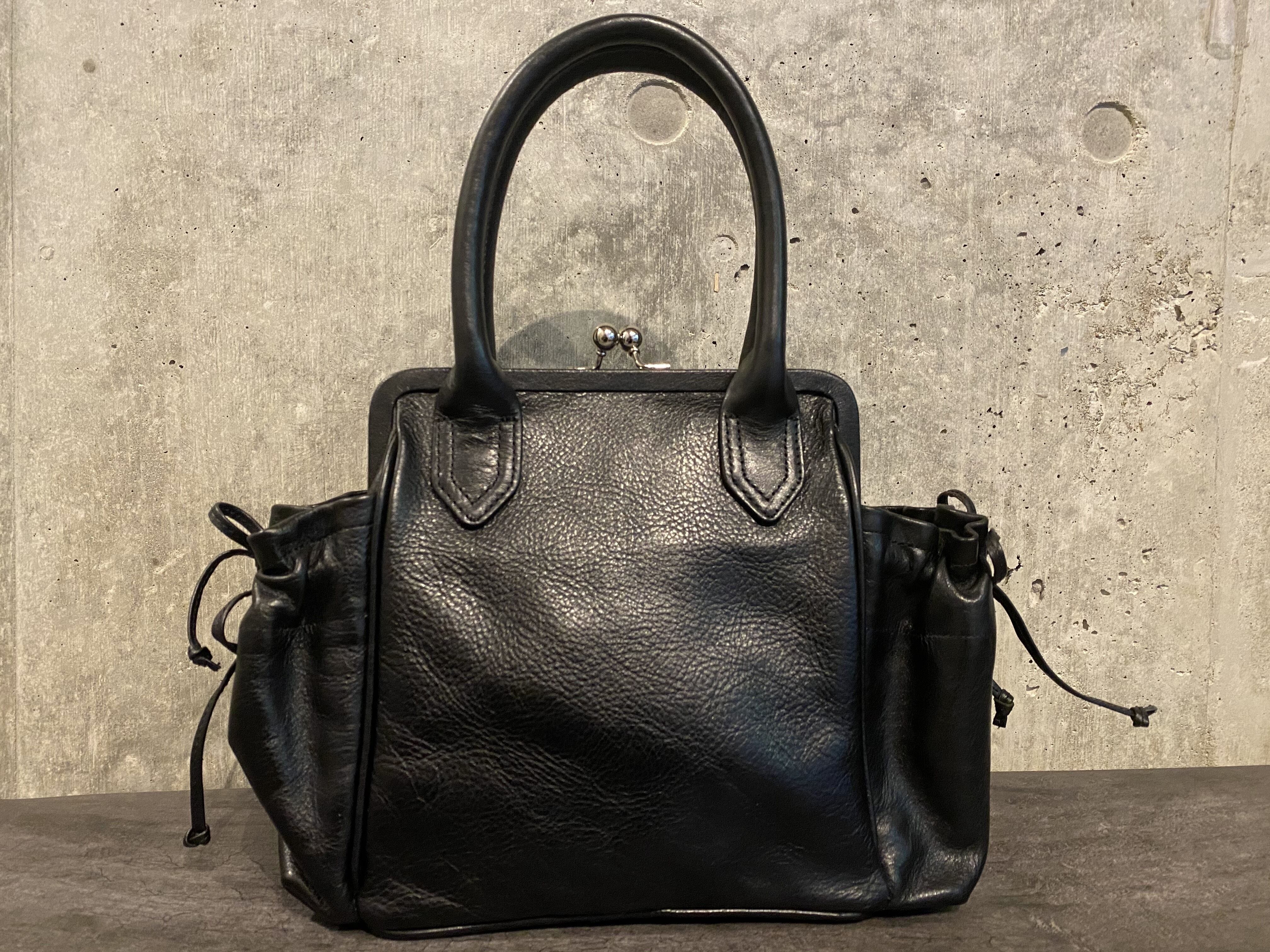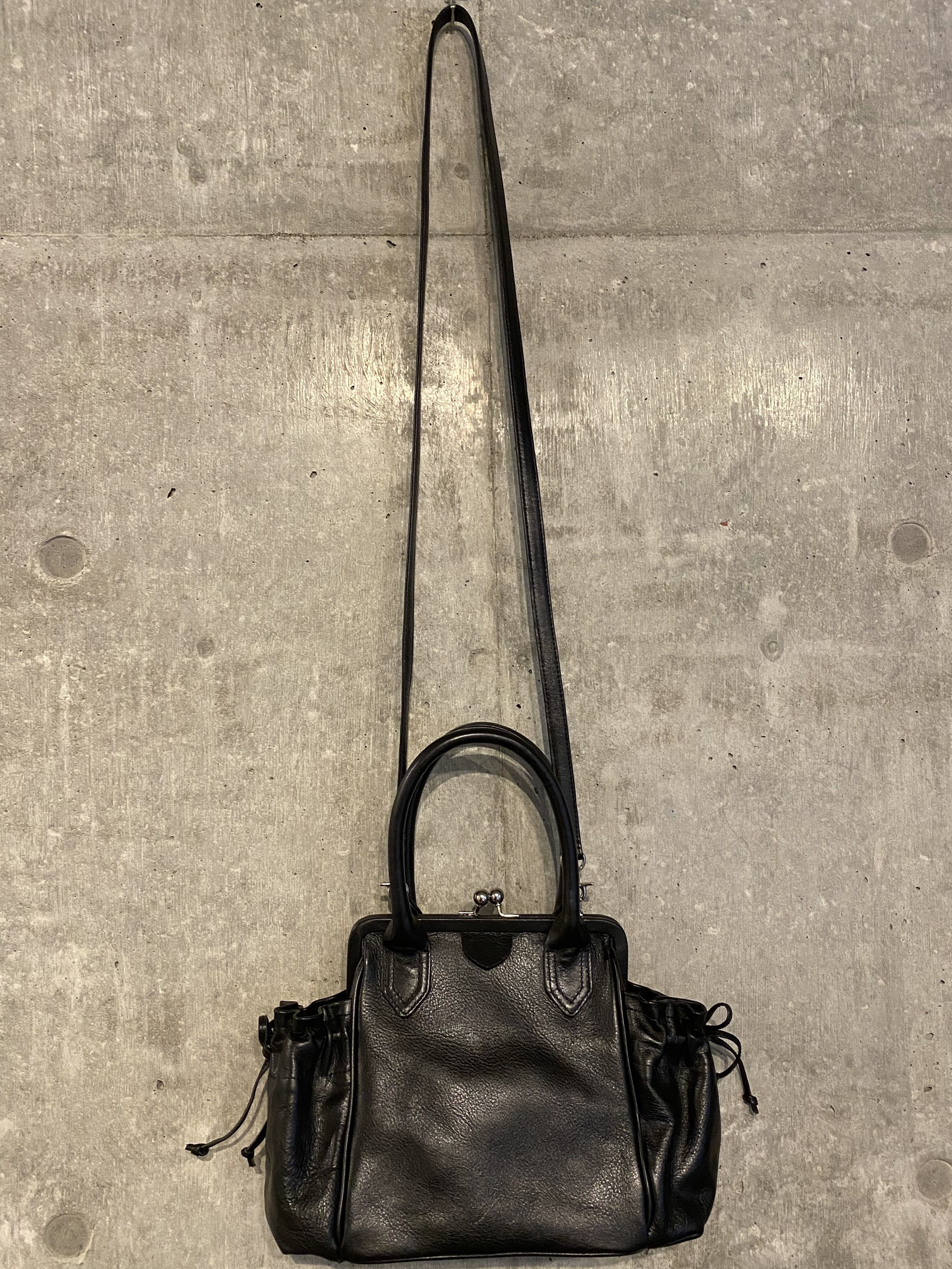 極美品 ヨウジヤマモト 半艶スムースレザー がま口 サイド巾着 ショルダー付き ハンドバッグ #[723]