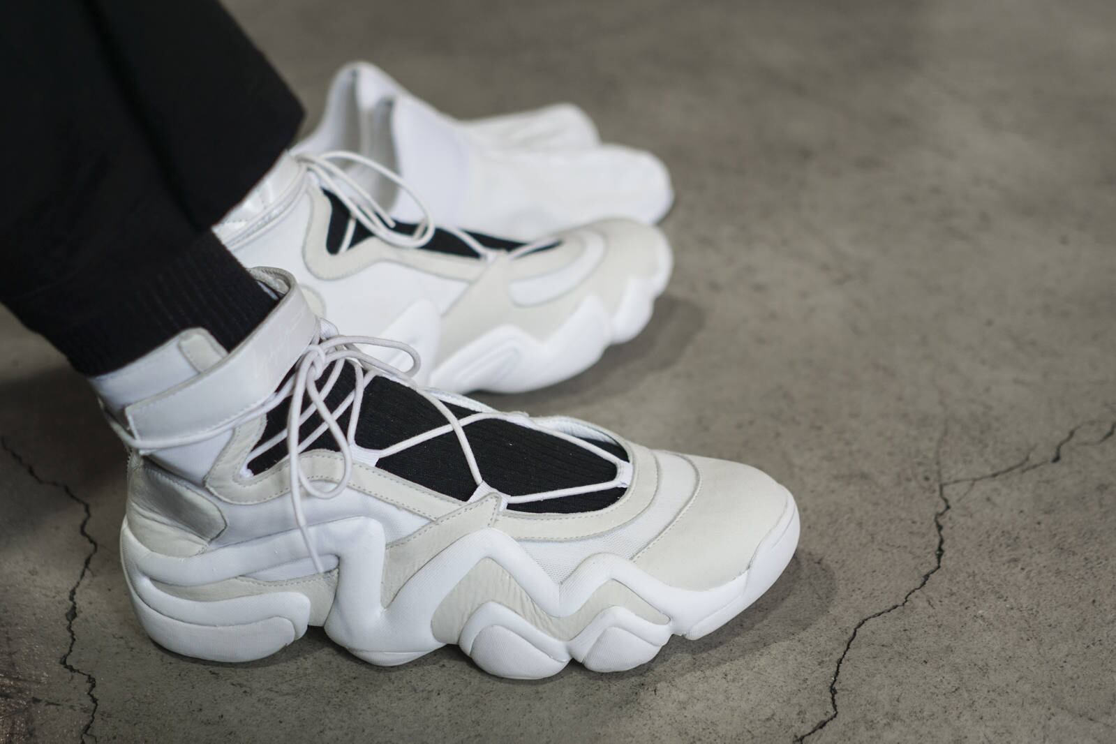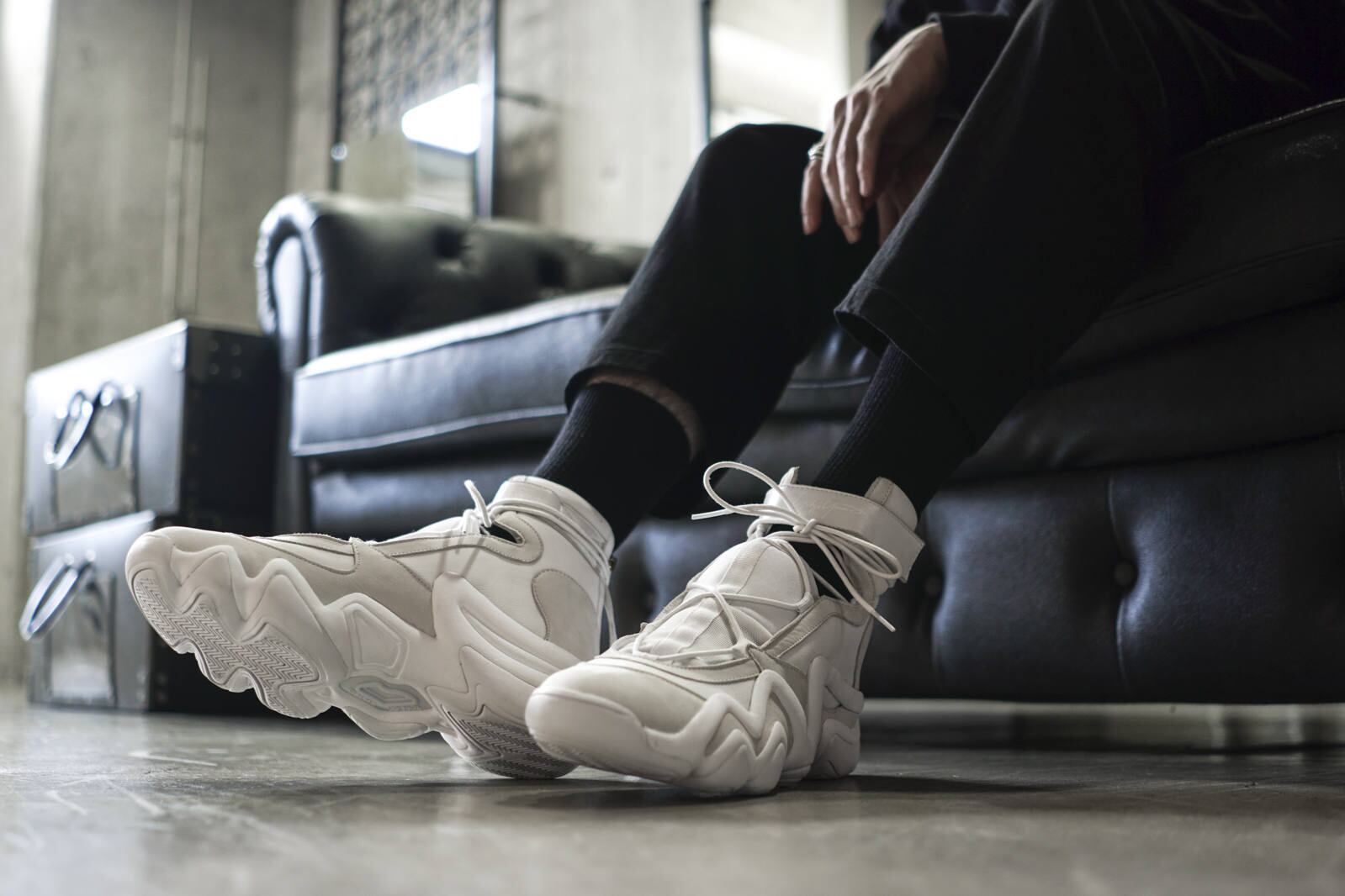 90年代を象徴するクラシックバスケットボールシューズ「CRAZY 8」のソールをベースにアッパーをオリジナルデザインした「YY STRAP BBALL MID」