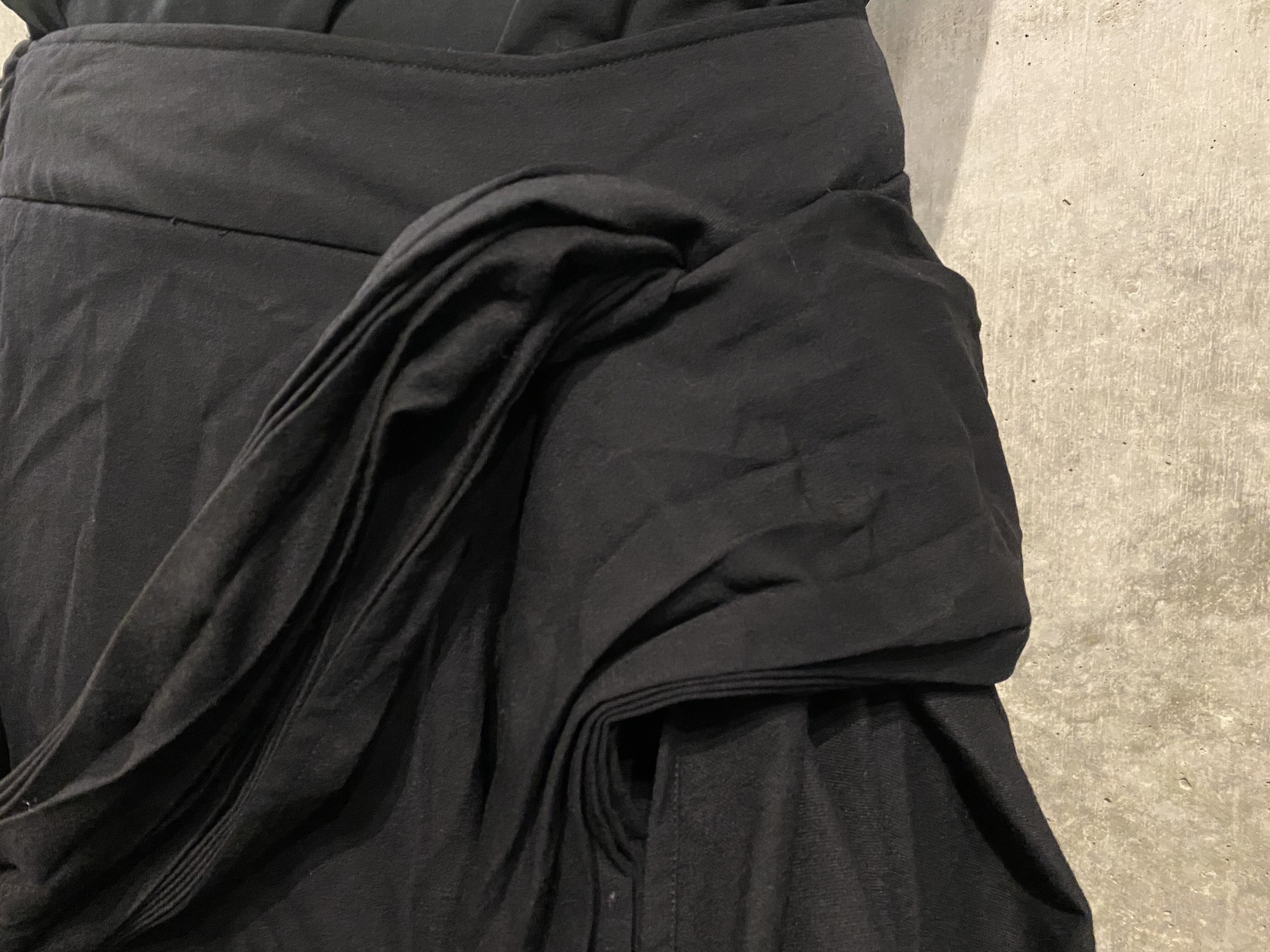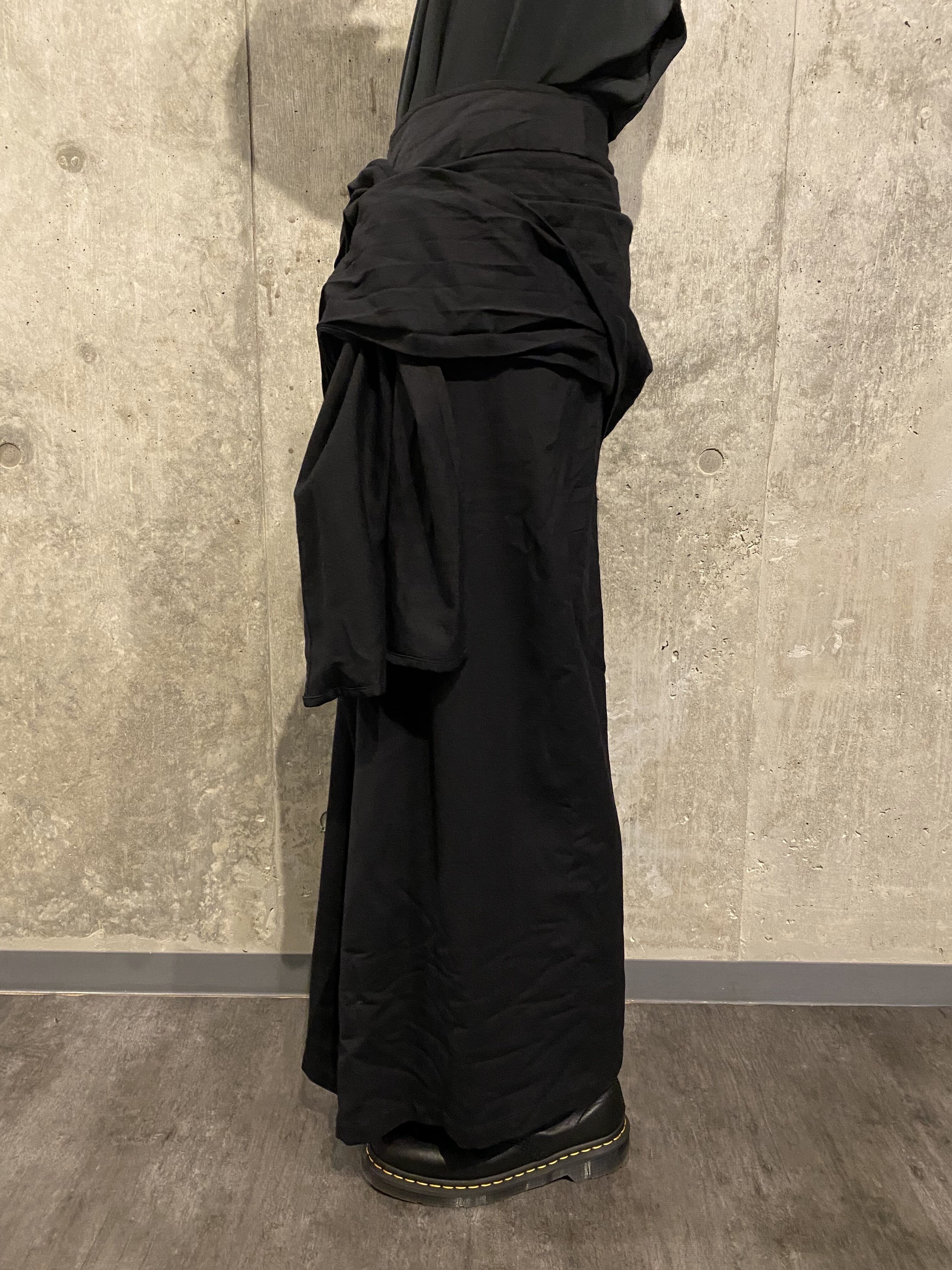 ヨウジヤマモト ウールギャバ ウエストリボンプリーツデザイン ロングスカート #[798]