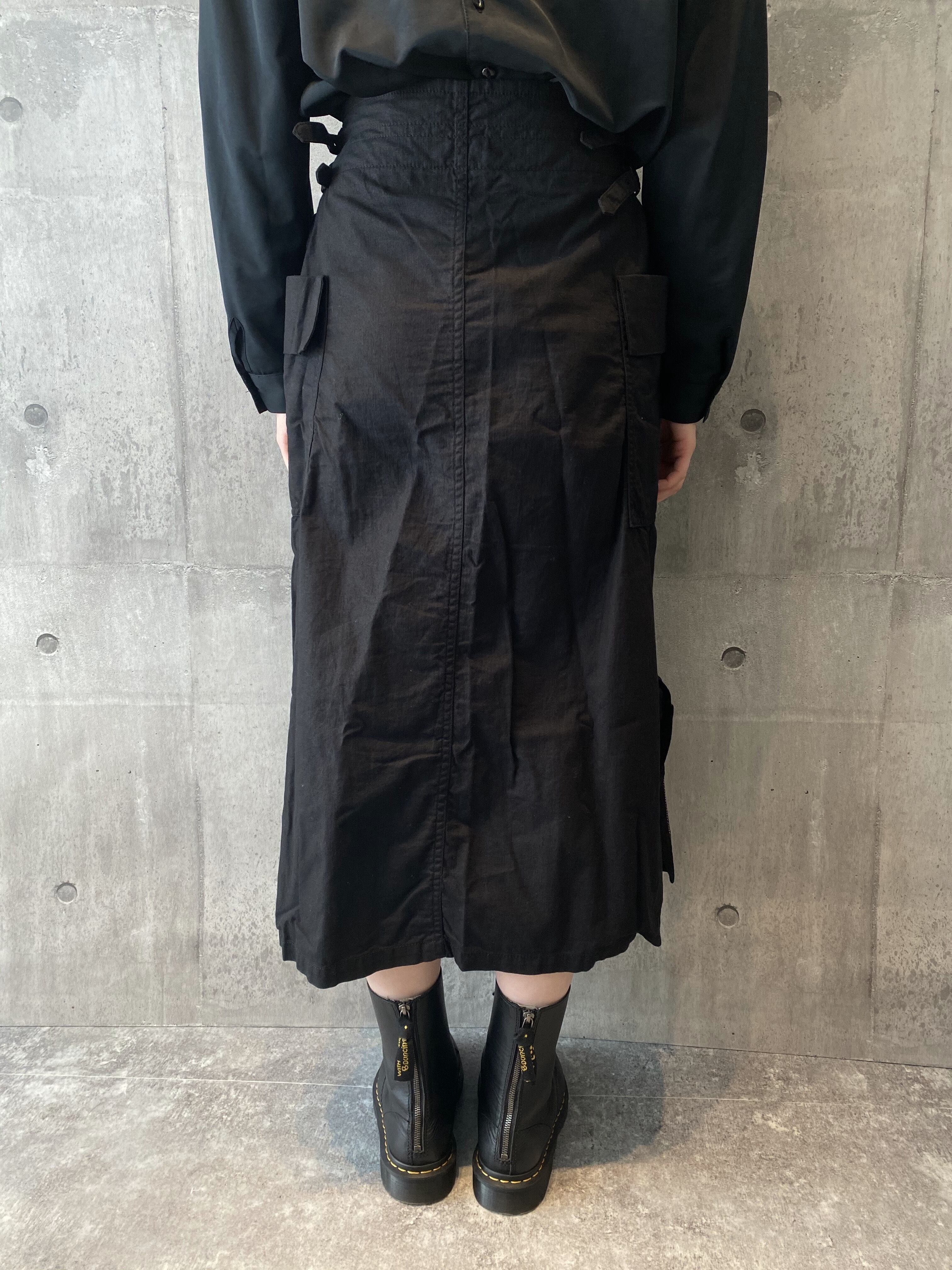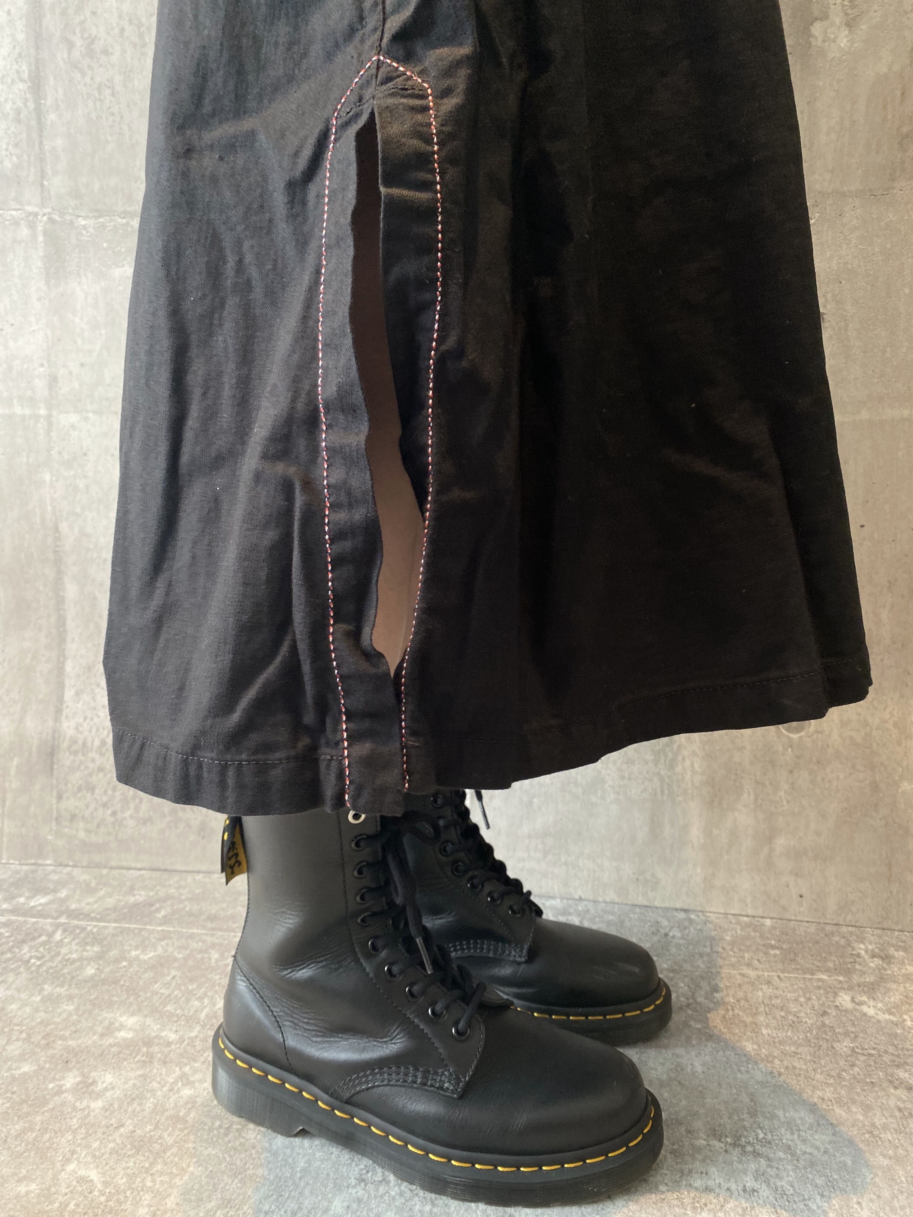 ヨウジヤマモト コットンリネン混 ウエストベルト サイドスリット ロングスカート #[832]