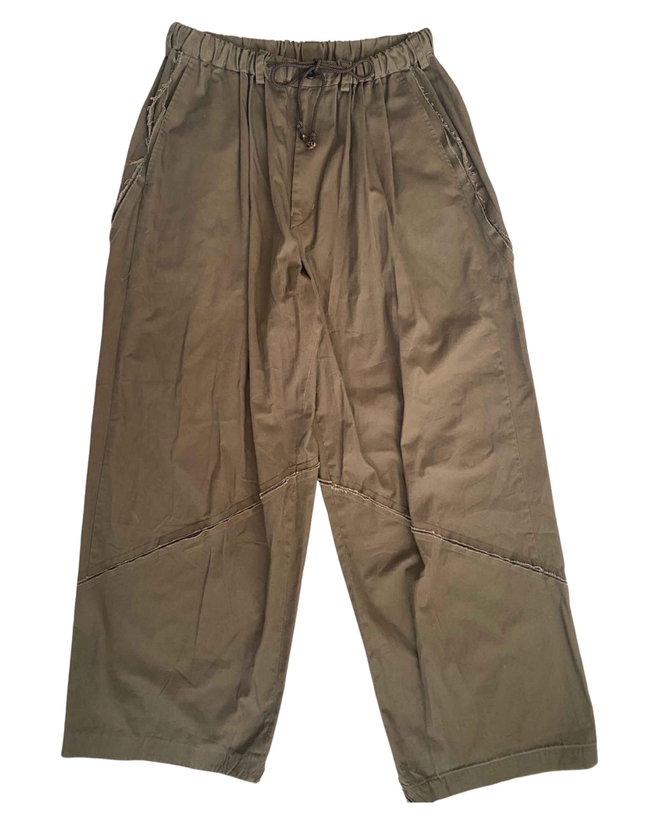 ダメージ加工やウエストドローコード、ワイドパンツとヨウジらしい一着です。