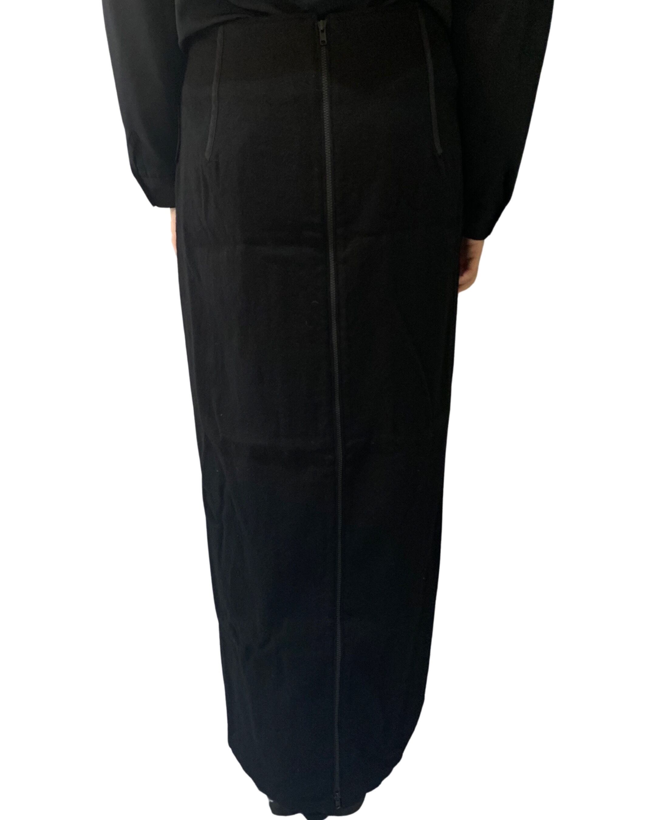 ヨウジヤマモト ウール混リネン バッグジップフレア ロングスカート #[975]